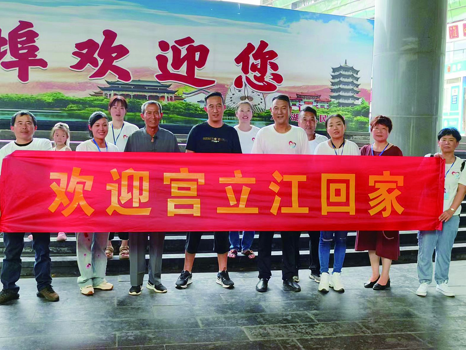 历时4个多小时的旅程,宫立江终于来到蚌埠。13:20,走出高铁南站出站口的一瞬间,他就看到了志愿者们拉起的横幅“欢迎宫立江回家”,此时,在出口处等待已久的王道永也一眼认出了儿子,立刻迎了上去,父子二人相顾无言,情不自禁地拥抱在了一起。