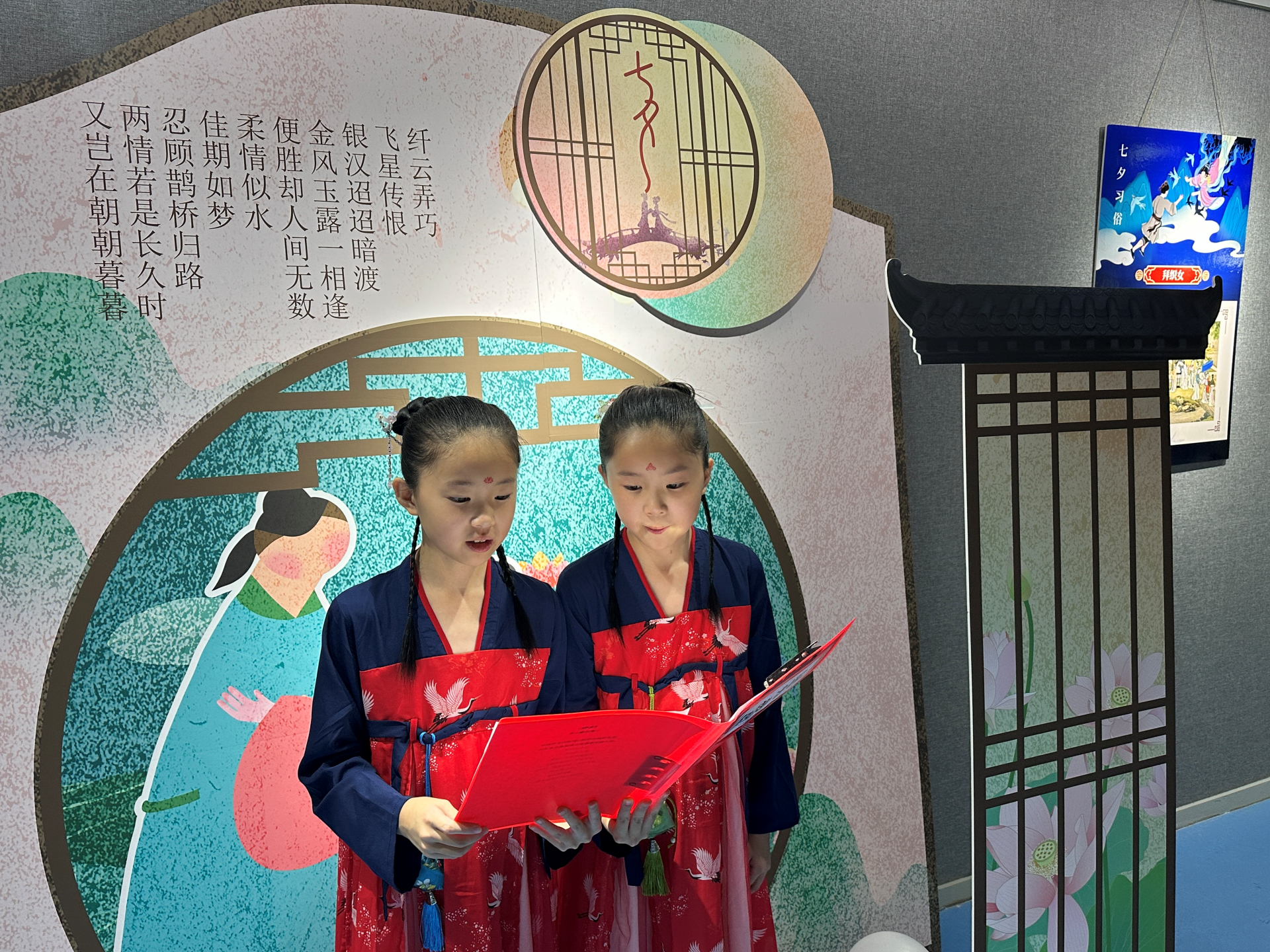 “金风玉露一相逢,便胜却人间无数”“银烛秋光冷画屏,轻罗小扇扑流萤”……从古至今,无数文人墨客引用七夕歌咏情怀,留下了许多经典诗词。活动中,小读者们通过诵读《迢迢牵牛星》、《秋夕》、《鹊桥仙·纤云弄巧》、《乞巧》、《偶然》等经典诗篇,重温传统古典文化的独特魅力。
