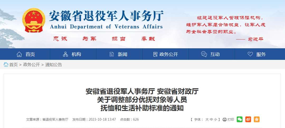 安徽省退役军人事务厅网站发布了