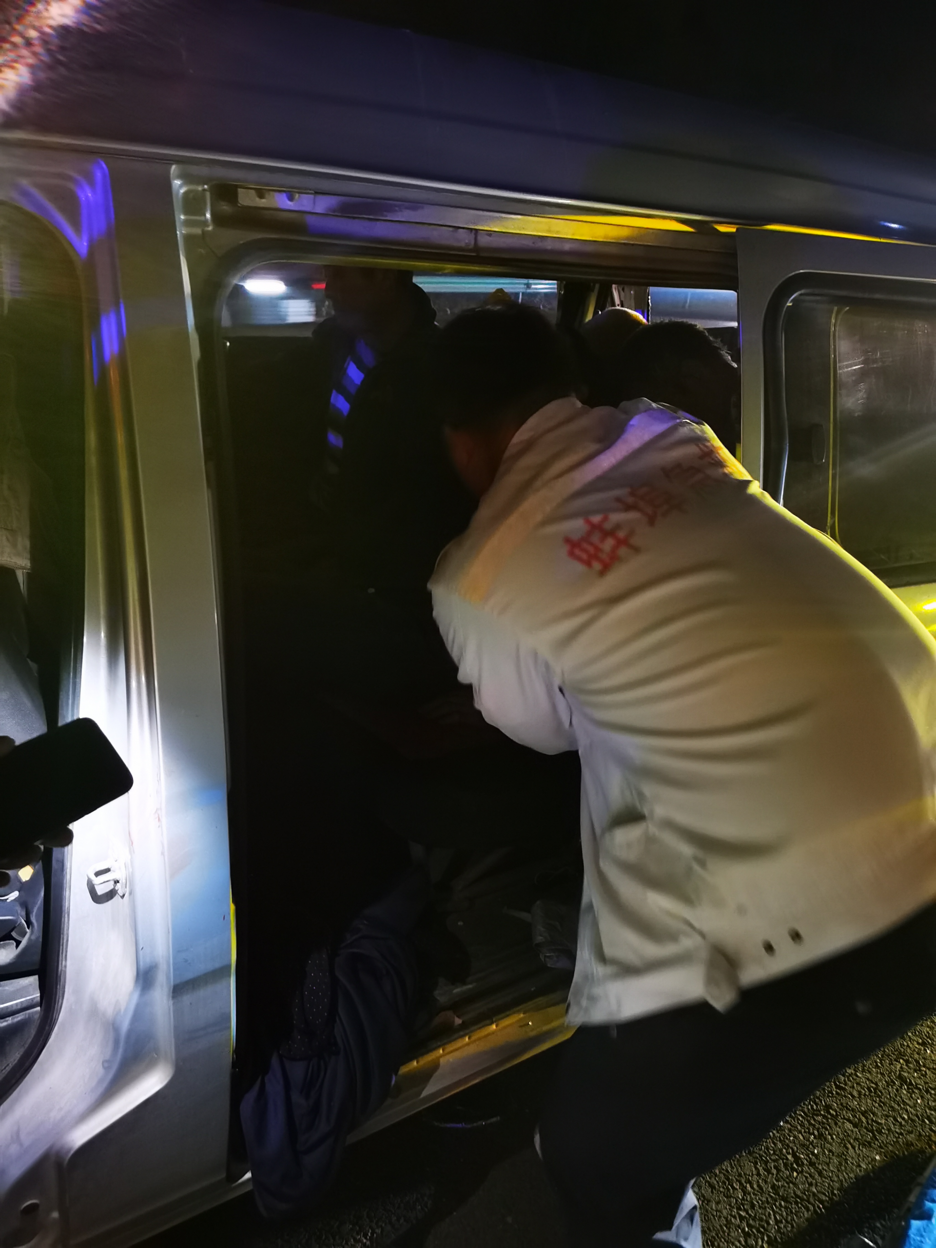 蚌埠120急救小组当机立断,首先将车前部的驾驶人员与副驾驶人员救出,夏羿迅速为两名伤者查体、救治,同时曹志宇立刻救援另外三名伤者。