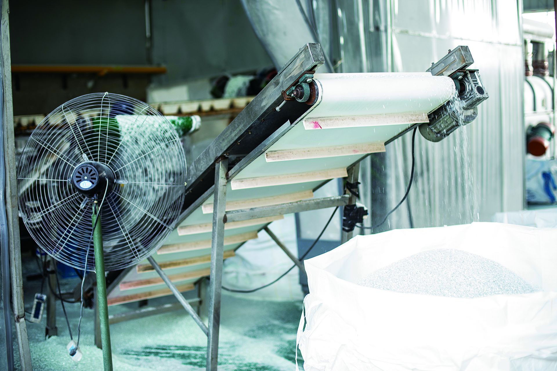车间生产的玻璃短切丝产品