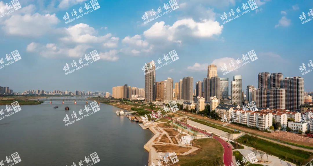 青年街今貌。此航拍图从朝阳路淮河公路桥往东拍摄,为青年街原先一号、二号码头之处。(李家富拍摄于2023年10月)
