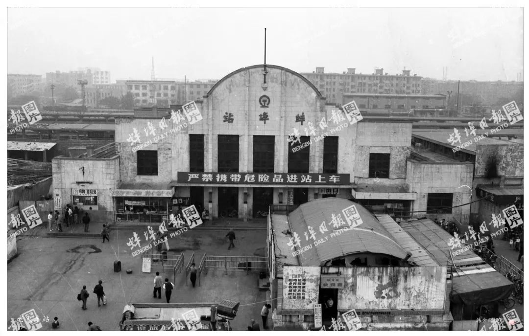 最初的蚌埠站,仅有两股道,六个人,票房东西向 ,面朝北,青砖平房,红色波形瓦,一字排列着四间平房。东首那间是售票房,正面有砖垛子隔成三个门洞,方便旅客出入。进站后是个小院子, 里面还有一、二等乘客的候车室,没有沙发。下车旅客经过站房东侧席棚子搭成的出口处,从外面还可以看到给火车加水的水塔。站房西边有个简陋的花园,用木栅栏围着,还可看到乘客翻越天桥上车的情形。