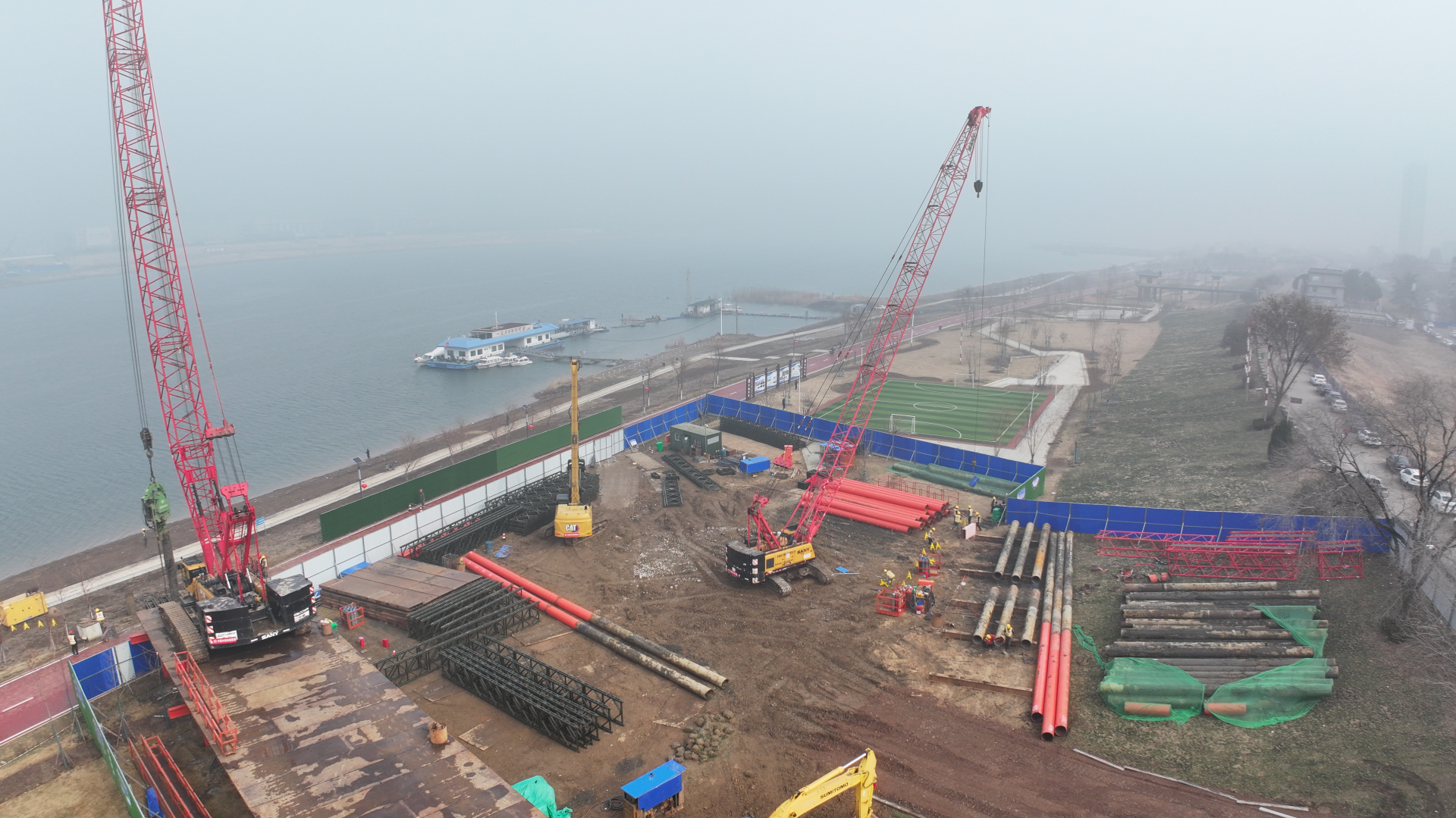 12月30日上午,延安路淮河大桥南岸建设工地被大雾笼罩。尽管天气寒冷,但工地上充满了活力和热情。在机器的轰鸣声中,坚守在一线的中铁四局建设者们,正在将一根根管桩打入地下,为尽早完成栈桥的建设做好准备。