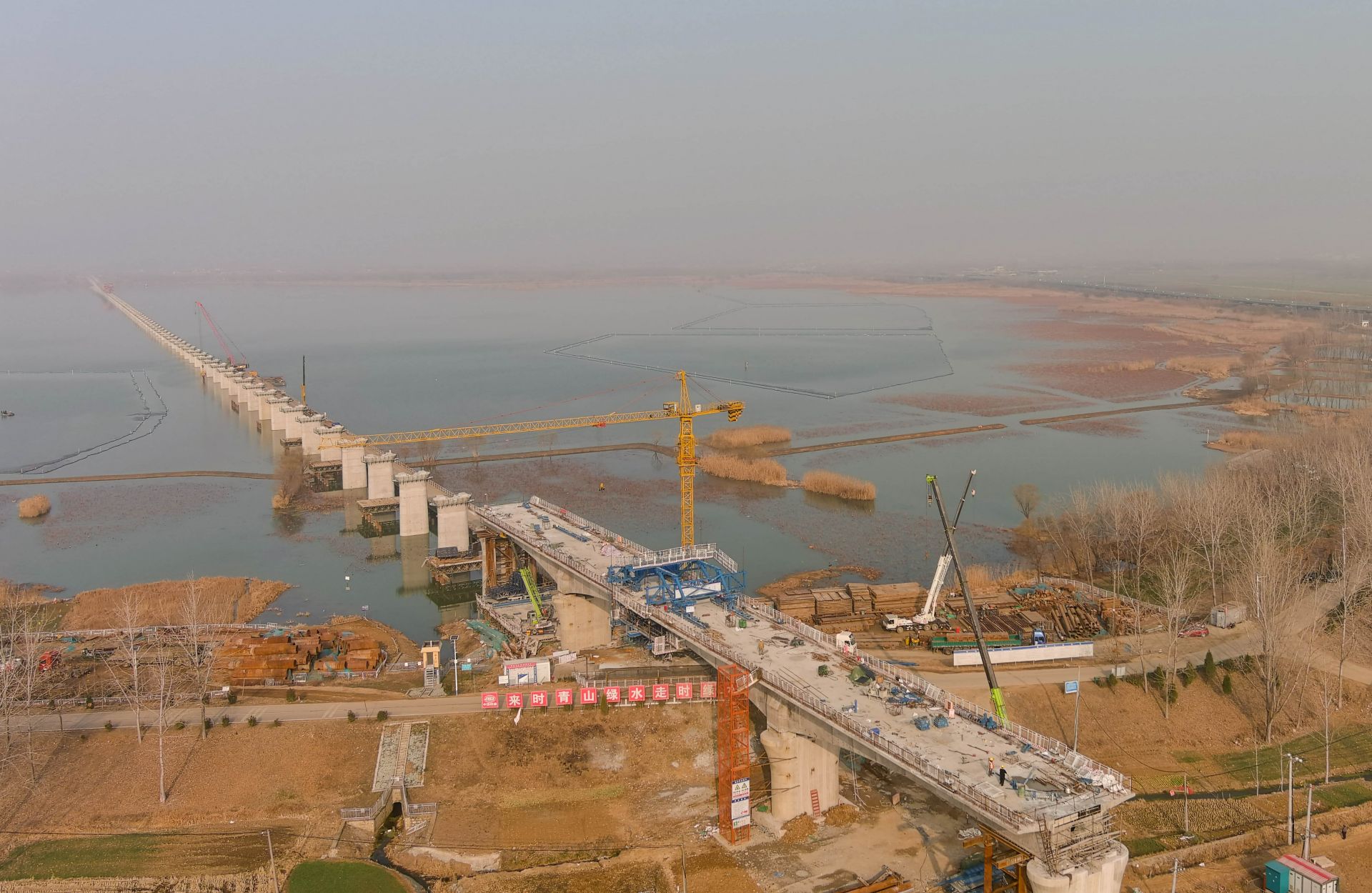 寒冬时节,虽寒风凛冽,但无法阻挡中铁十五局集团承建的新建合肥至新沂铁路安徽段站前Ⅱ标怀洪新河特大桥建设的步伐。