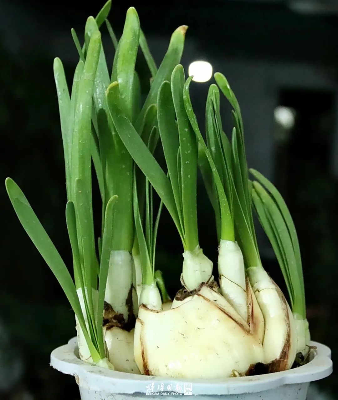 蚌埠虽然是南北分界的气候,但还是偏于北方。初冬的天气,仍然很干燥,每天要向水仙植株喷水。既要保持温度和湿度,又要注意防寒和光照过强,可以适当遮盖。因为是为了让它春节盛开,不能提前。等到一周后新芽萌出,便可充分照射阳光,找几块石头围在周围,让它稳固生长。这个过程到过年,要比过去用萝卜挖个水槽养水蒜要用心得多。在全家人的心中,都在时刻关怀这位成长中的“凌波仙子”。