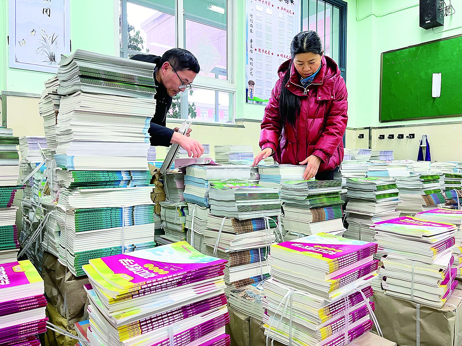 “新书到了,马上就要开学了。”“是的,就这两天,我们赶紧整理好,学生们过两天就要来领新书了。”“教室也要打扫了。”……老师们一边整理新书、时不时讨论几句。蚌埠第六中学办公室负责人宋超说,各年级的教材都到了,累计有5万余册,已经按年级摆放在了指定区域,教职工在开学前几天提早到校为新学期做各项准备工作。