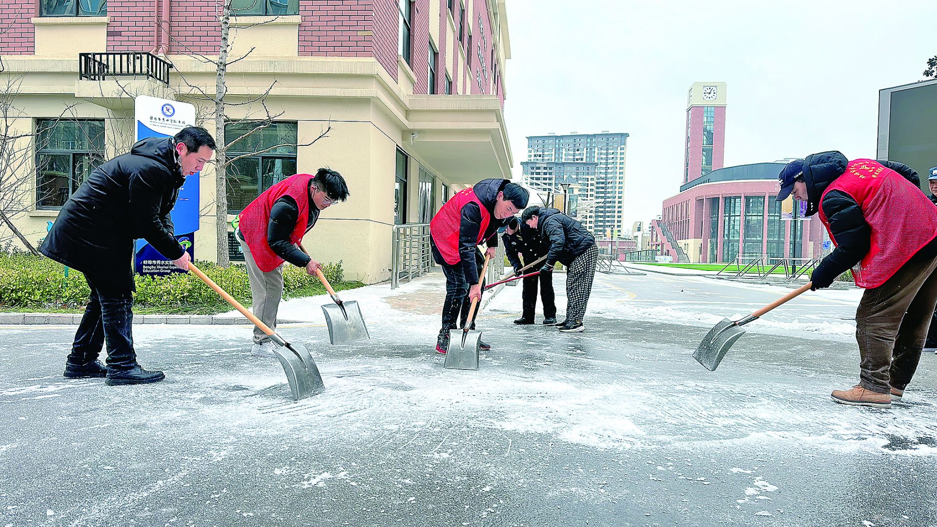 蚌埠市秀水实验学校教职员工清扫校园积雪