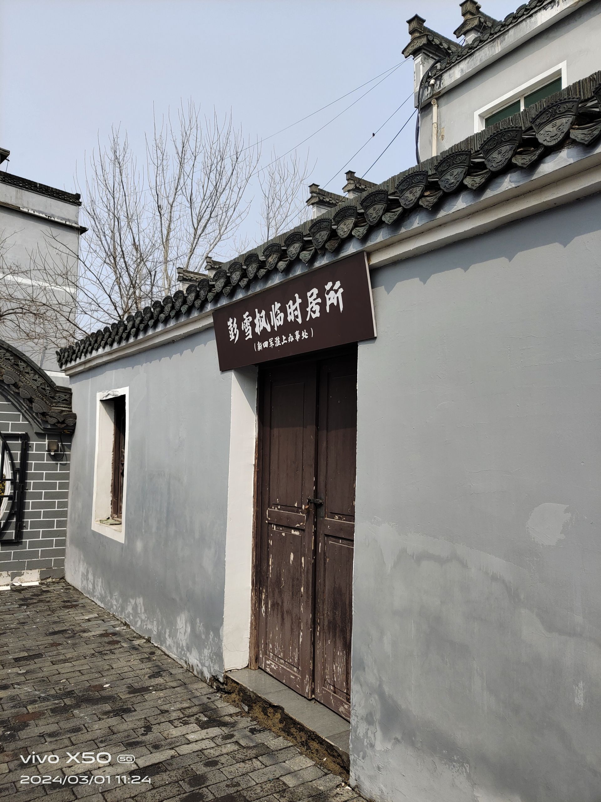 这里是怀远县龙亢镇。涡河北岸,蚌埠日报融媒体采访团走进了一条名为火神巷的小街。巷内,灰瓦青砖,一处保存完好的上世纪20年代的建筑安居于此。门旁写有“新四军淮上行署旧址”的立碑默默诉说着抗日战争壮烈史诗。门口那棵历经烽火、弹痕累累,却依然顽强生存的130岁的老国槐,指引我们走进那段战火纷飞的岁月,见证革命者的英勇无畏,缅怀先烈、俯仰追思。