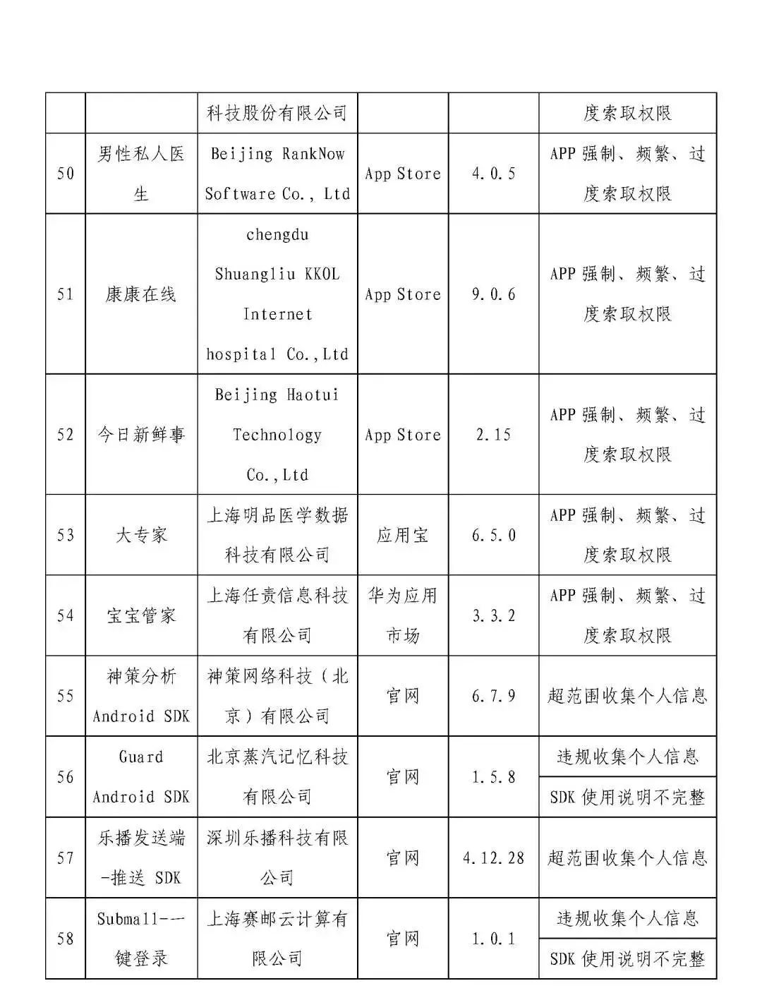 附件:工业和信息化部通报存在问题的APP(SDK)名单