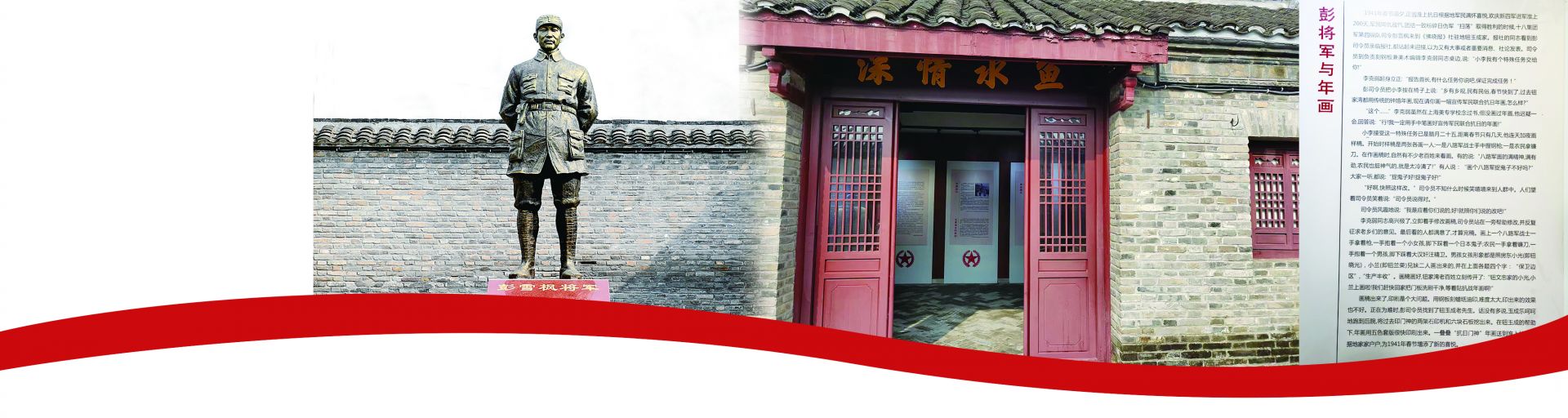 位于新四军淮上行署旧址内的彭雪枫将军雕像 彭将军与年画》故事展板