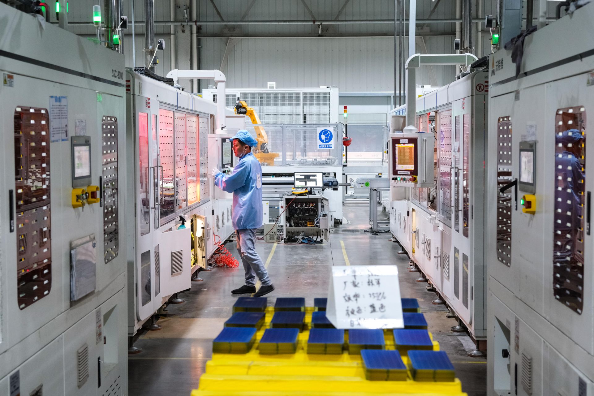 2024年4月15日,位于安徽省蚌埠市五河县经济开发区安徽林洋光伏装备有限公司生产车间,工人正在加紧赶制订单,满足国内外市场需求。
