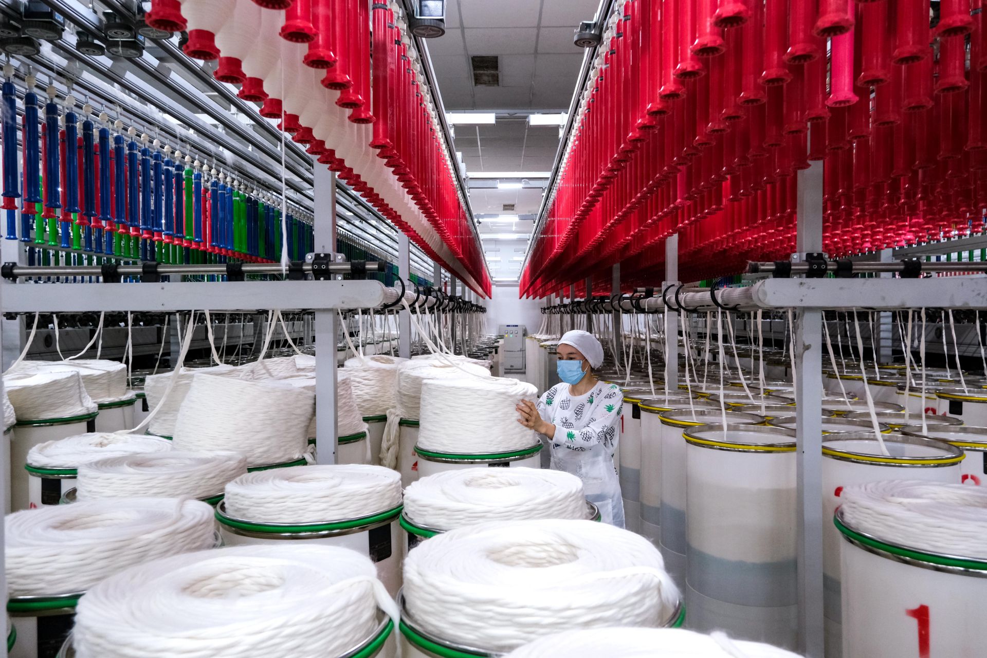 2024年4月15日,位于安徽省蚌埠市五河县经济开发区纺织有限公司生产车间,工人正在加紧赶制订单,满足国内外市场需求。