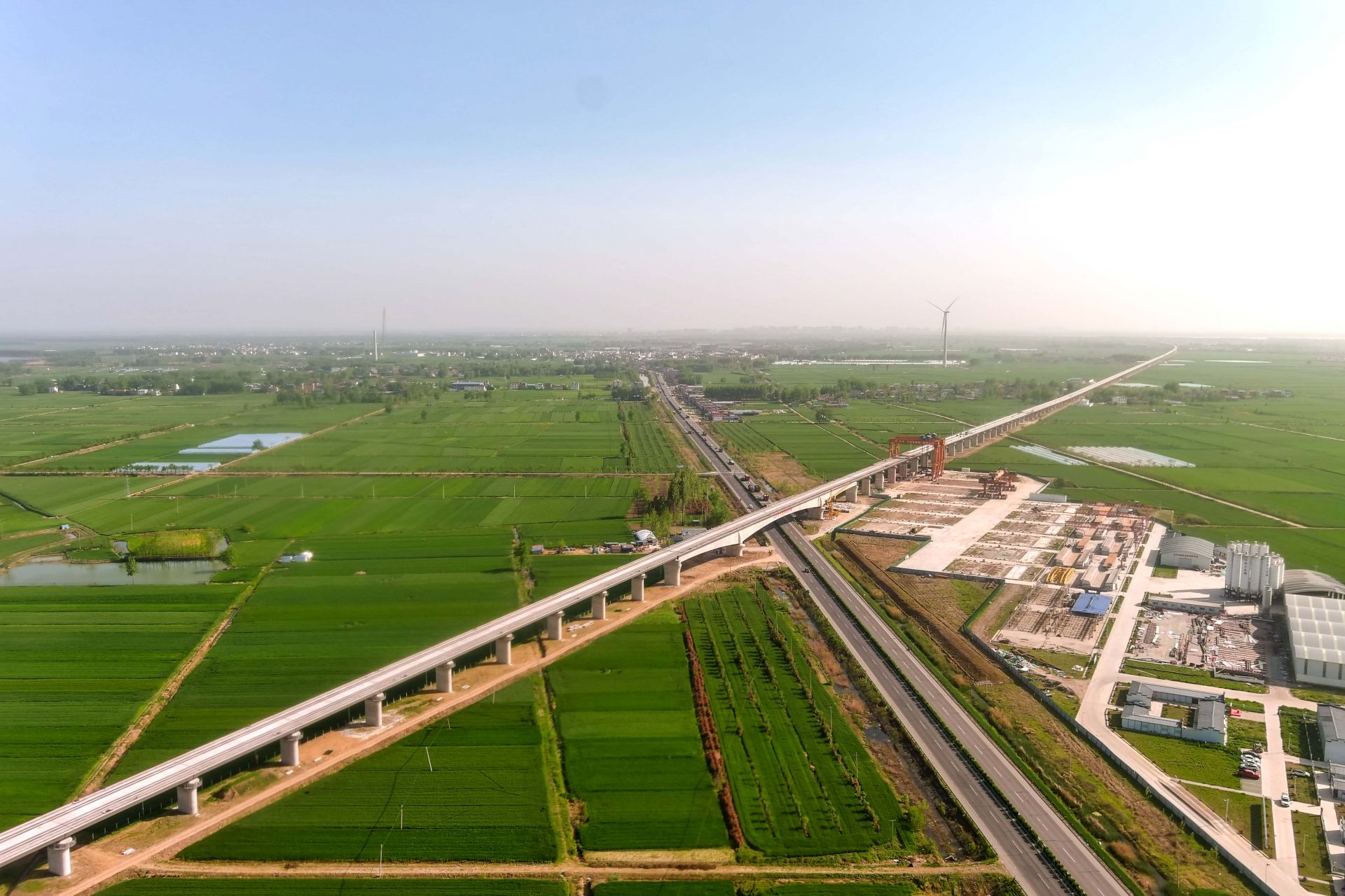 由中铁十五局承建的新建合肥至新沂铁路安徽段站前二标位于安徽省蚌埠市五河县境内,线路全长25.888公里,桥梁占比93.3%。桥梁工程主要有怀洪新河特大桥、淮河特大桥,共有简支梁676榀。