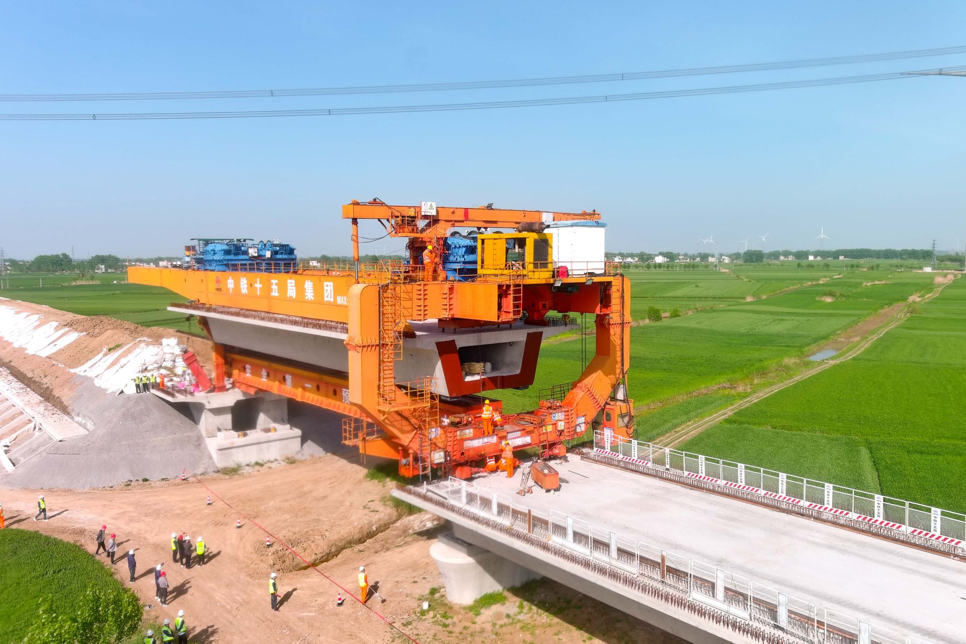 蚌埠发布客户端讯 2024年 4月18日,随着最后一榀箱梁成功架设到五河县白墩村怀洪新河特大桥0#台-1#桥墩上,标志着中铁十五局合新铁路安徽段站前二标项目676榀箱梁架设圆满完成,为全线按期通车奠定基础。