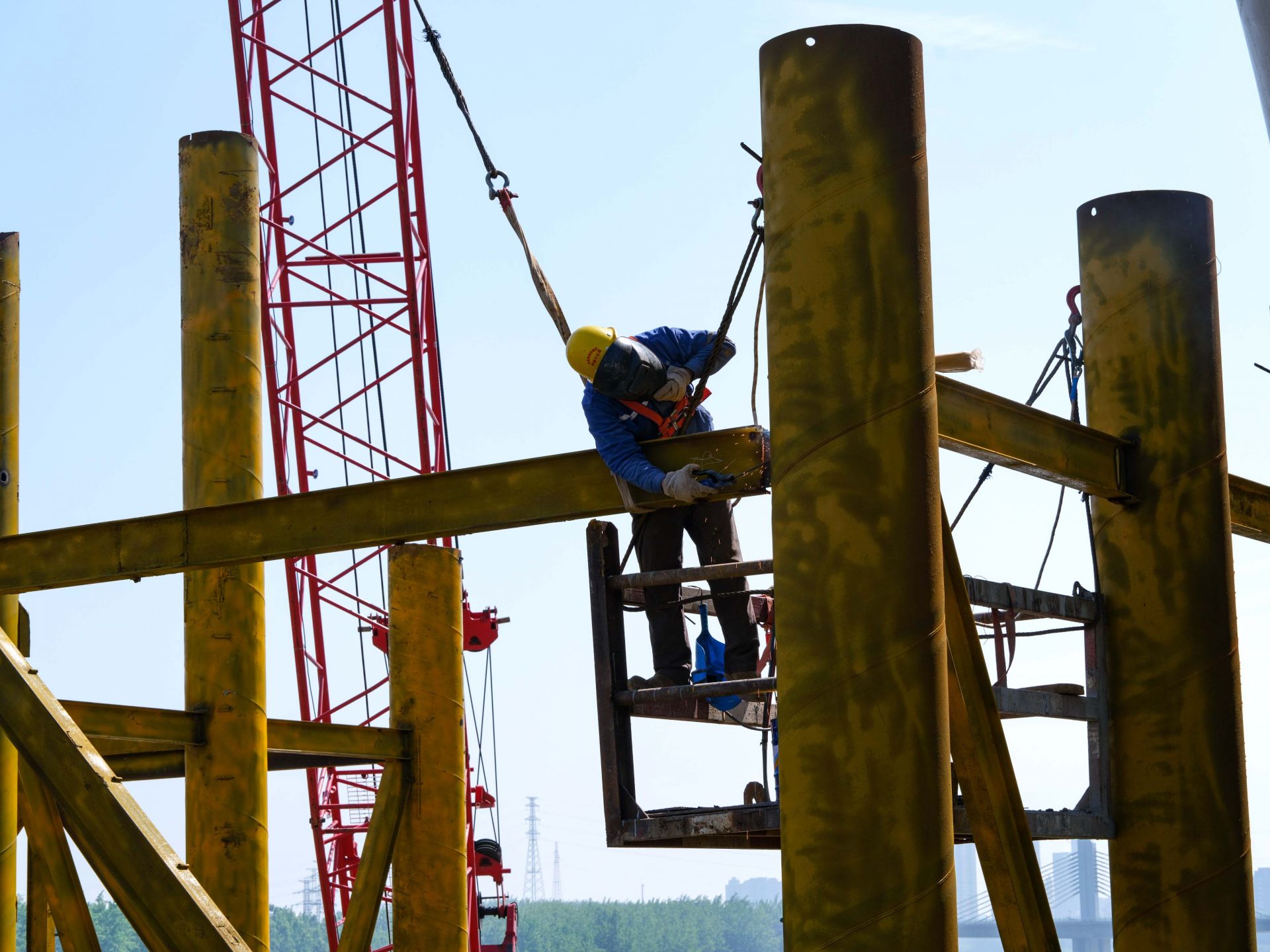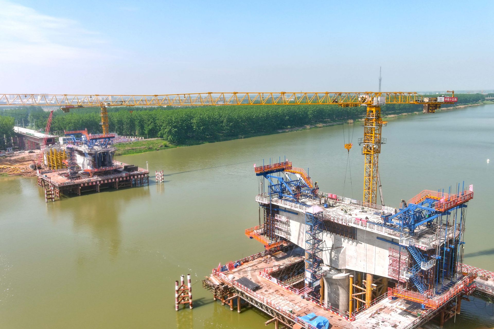 2024年5月1日上午,工程建设者正在合新高铁五河段怀洪新洪特大桥施工。