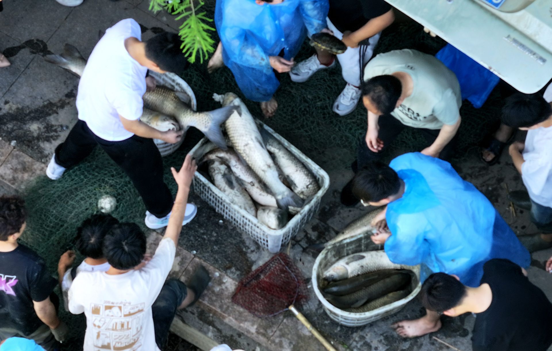 当天上午8点,捕鱼活动正式拉开帷幕,80余名同学做好防护下明湖捕鱼,30余名同学在湖畔做辅助工作。“大鱼上岸喽!”一阵惊呼后,明湖第一条大鱼被同学捕捞上岸,