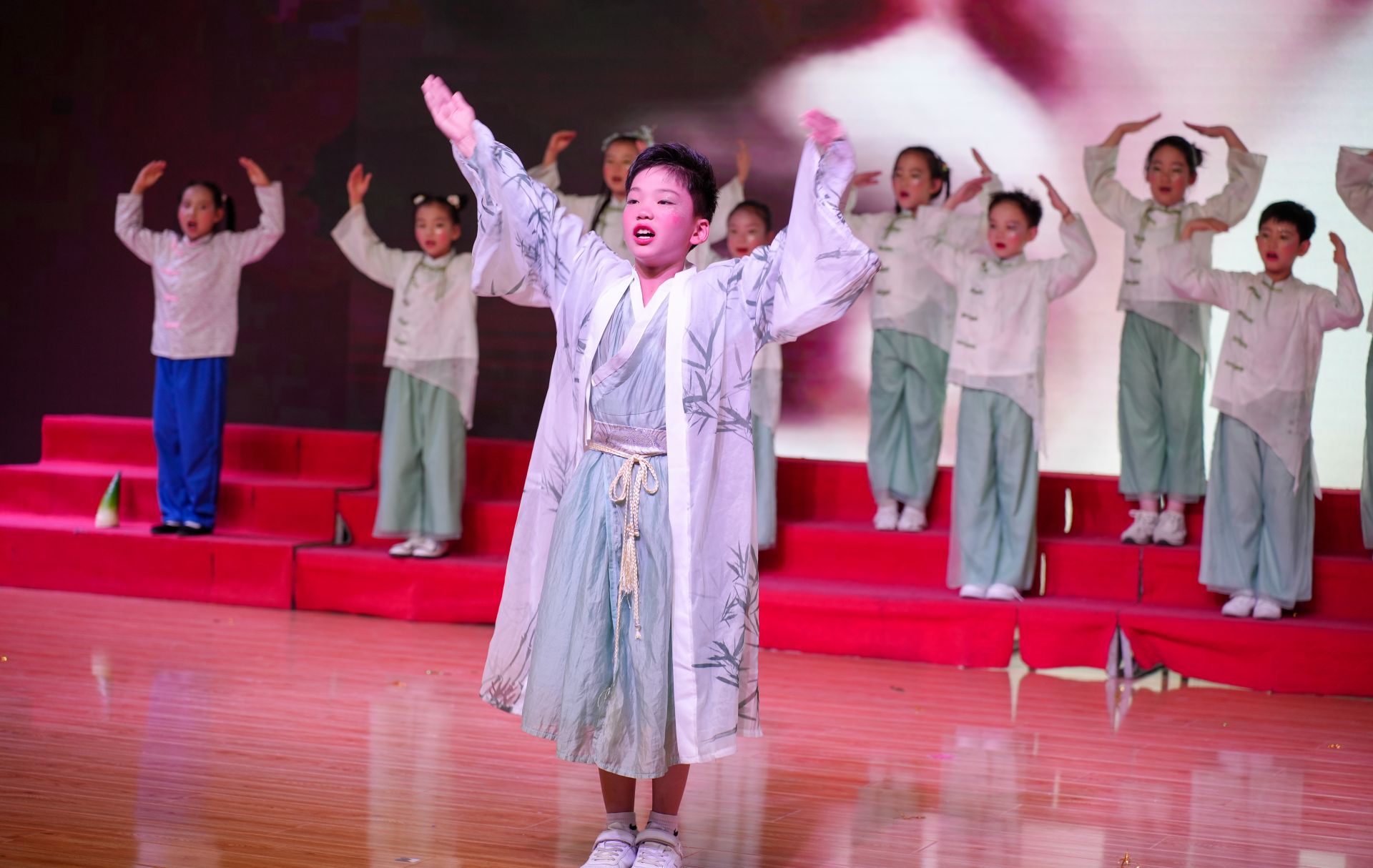 活动现场,孩子们身着盛装,自信大方地展示才艺,脸上洋溢着快乐的笑容。唱歌、跳舞、情景剧……随着精彩节目的不断上演,台下的观众不时地发出欢呼声和掌声。家长们也纷纷拿出手机,记录下孩子们在台上的精彩的瞬间,留下了美好的回忆。