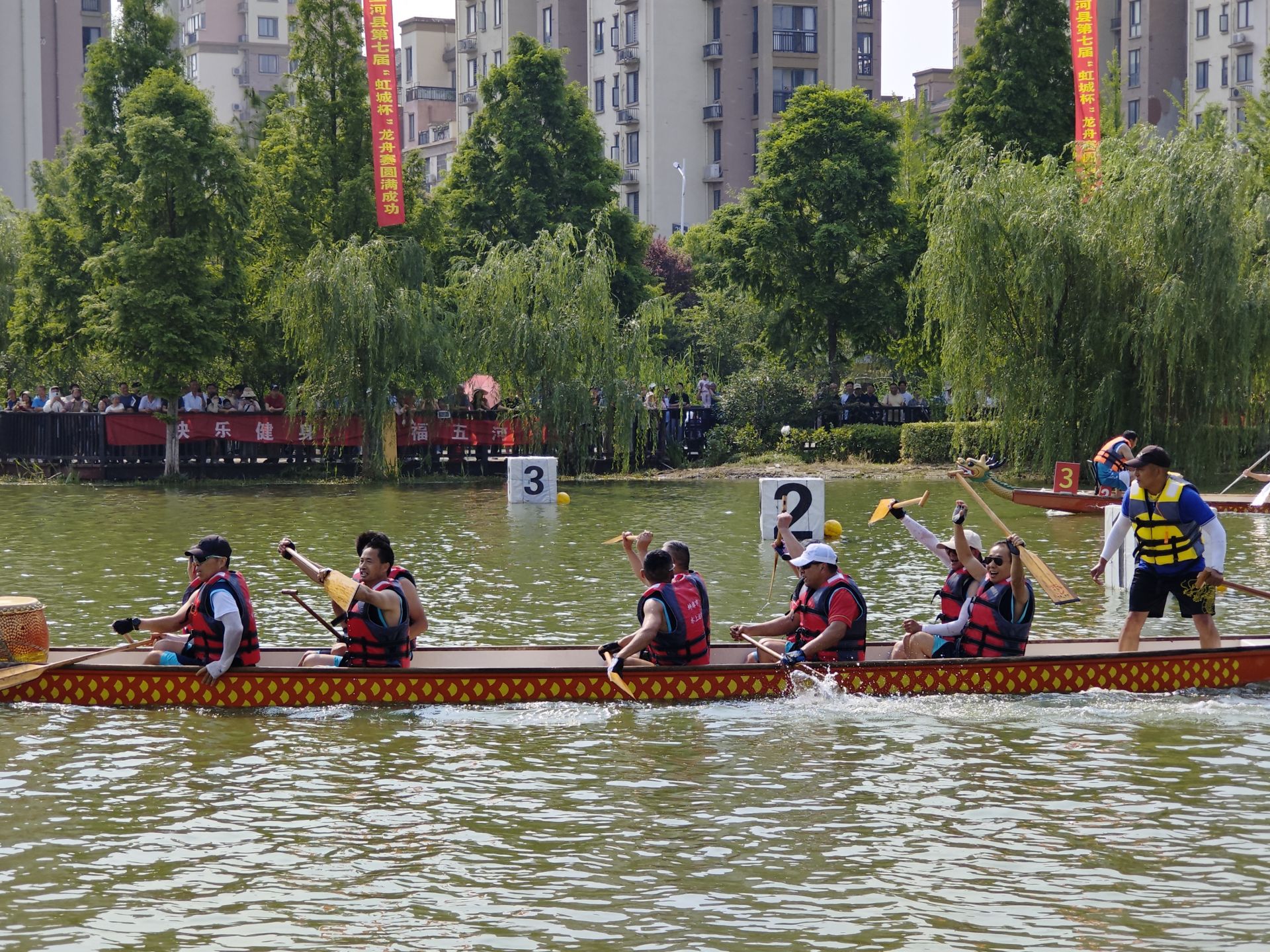 赛龙舟运动是一项极具民俗色彩的竞技体育项目,也是中国传统民俗与运动精神的完美结合。比赛开始,29支参赛队伍和3支女子队伍在漴河上展开激烈角逐。龙舟赛道上,百舸争流,鼓声震天,选手们齐心协力、奋勇向前,争夺冠军的场面扣人心弦。岸边的观众热情高涨,为参赛选手加油助威,欢呼声此起彼伏。