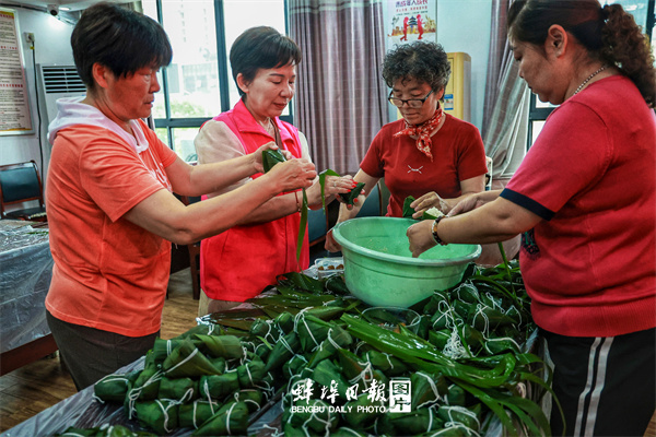 建新社区组织辖区女企业家开展包粽子活动,为孤寡老人送去关爱 陈丹 摄