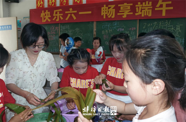 淮上区胡口小学烦人包粽子活动 魏建帮 摄