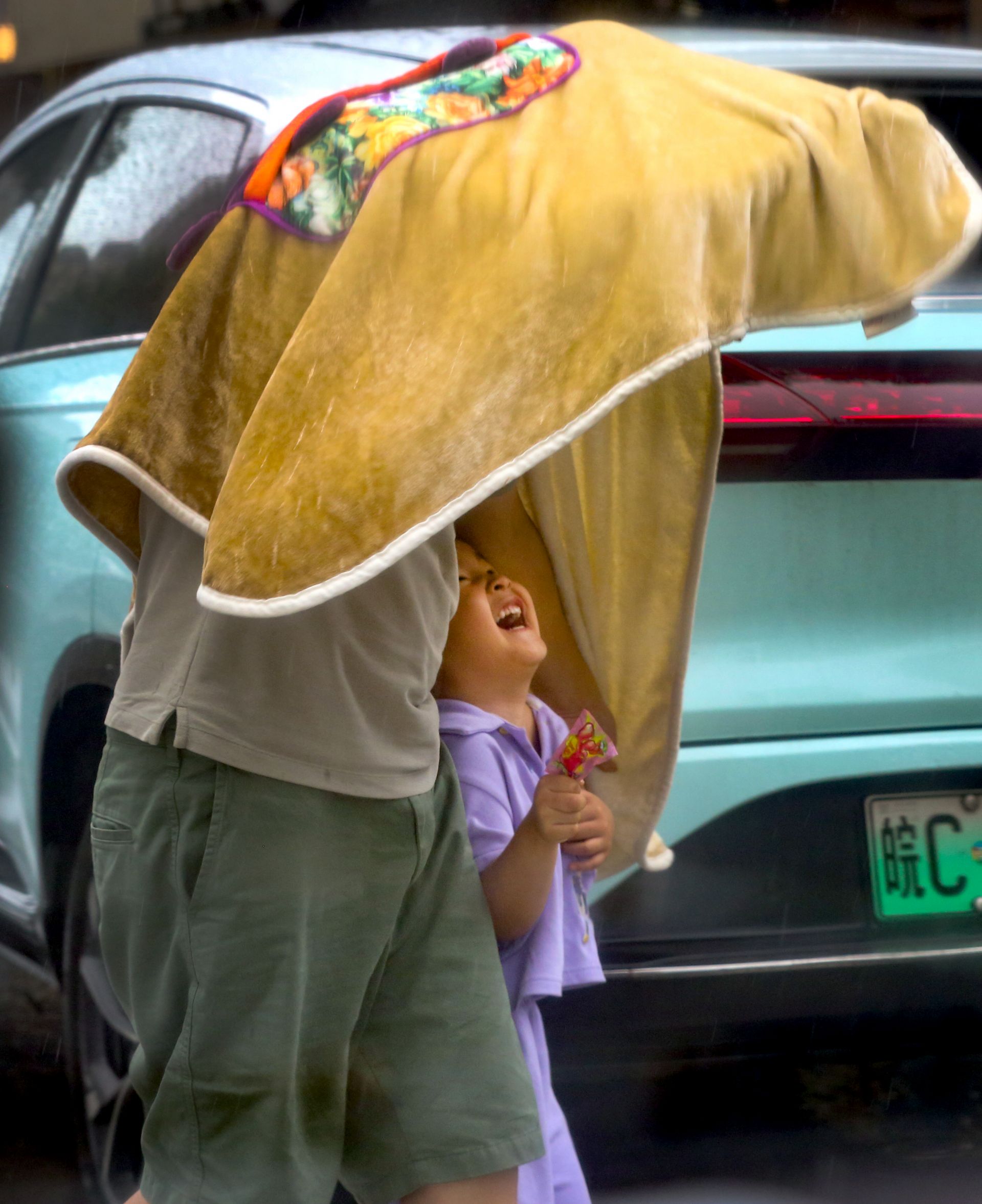 ▲为女儿遮风挡雨 刘新义/摄