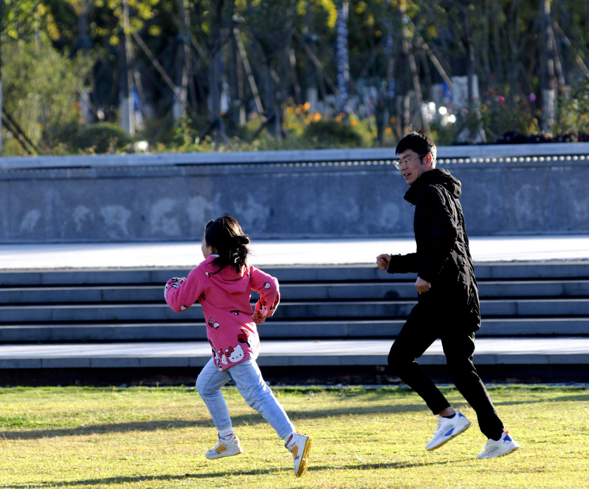 ▲我和爸爸去跑步 夏炜/摄