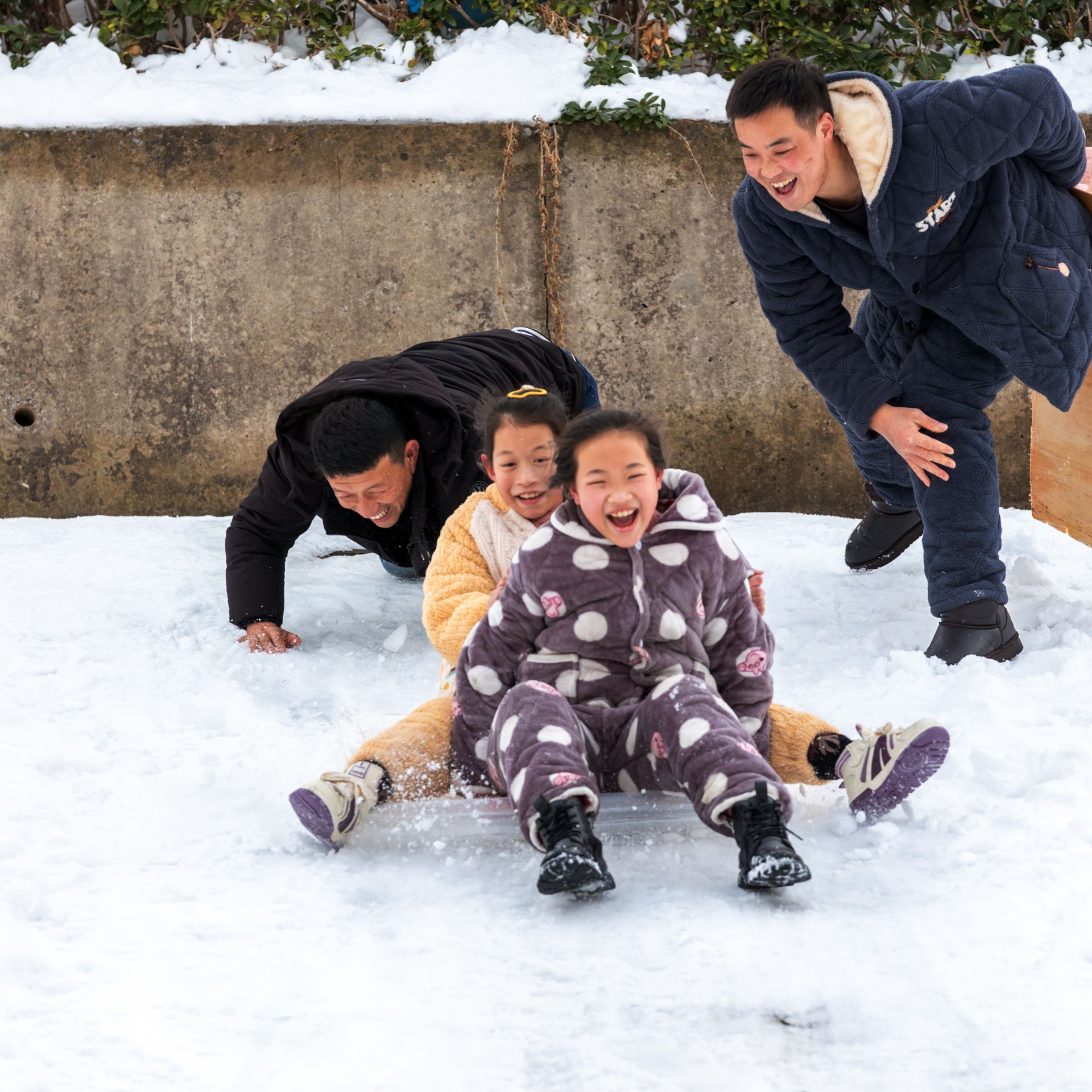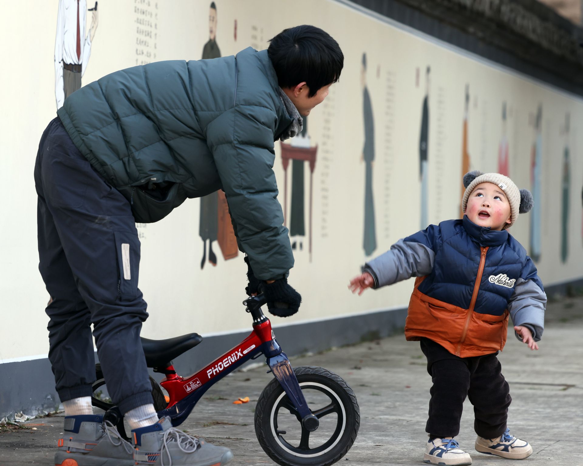 ▲2024年2月6日,怀远县,父亲与孩子在滑雪 帖东/摄