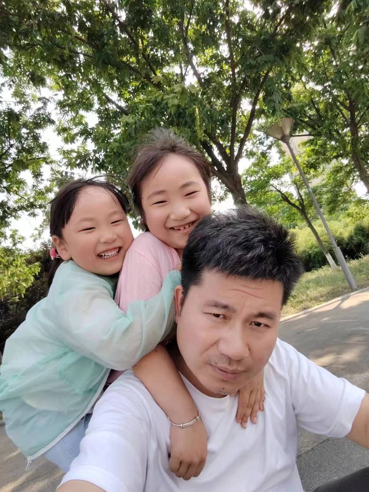 ▲爸爸,父亲节快乐,我们永远是您的小棉袄!——沈可欣、沈艺潇