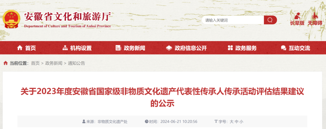 《关于2023年度安徽省国家级非物质文化遗产代表性传承人传承活动评估结果建议的公示》