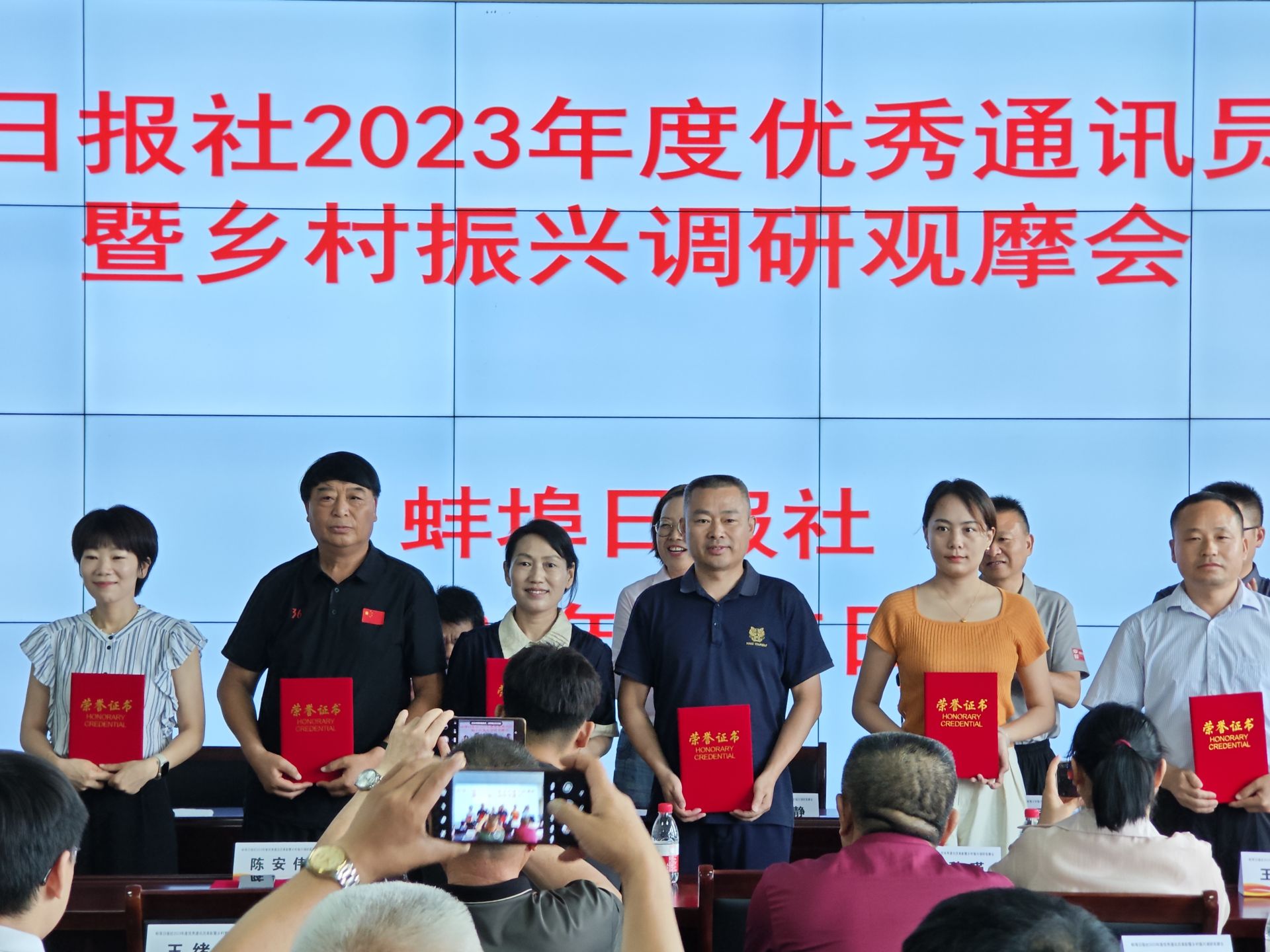 去年以来,在各县委宣传部的领导下,广大通讯员紧紧围绕中心、服务大局,在基层扎实采访,潜心创作出一批有思想、有温度、有品质的新闻作品,在助力县域发展、实现乡村振兴的进程中发挥出重要作用。3名大力支持县域新闻宣传工作的同志和27名为蚌埠日报宣传报道工作作出积极贡献的同志获得了本报表彰。