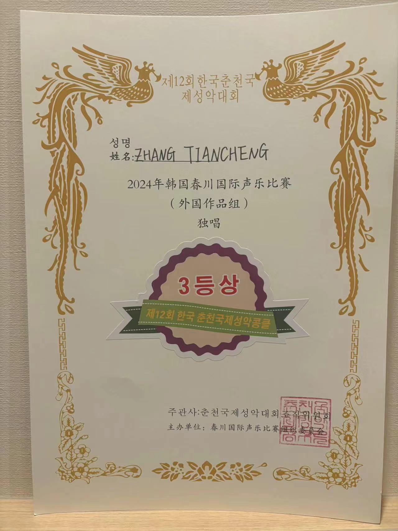 蚌埠发布客户端讯(融媒体记者 郝玉琳 通讯员 翁子立)2024年7月15日-7月16日,第十二届“韩国春川国际声乐比赛”在韩国首尔如期举行。本次比赛自报名起就引起了广泛关注,选手来自世界各地多所专业音乐学院、专业艺术团体、艺术学院、师范类院校的教师、演员和学生200多人次参赛。蚌埠技师学院教师张天成通过选拔资格赛、7月15日的初赛,进入7月16日的最终决赛,在决赛中以一首意大利艺术歌曲《Non ti scordar di me》获得外国艺术歌曲组独唱三等奖。