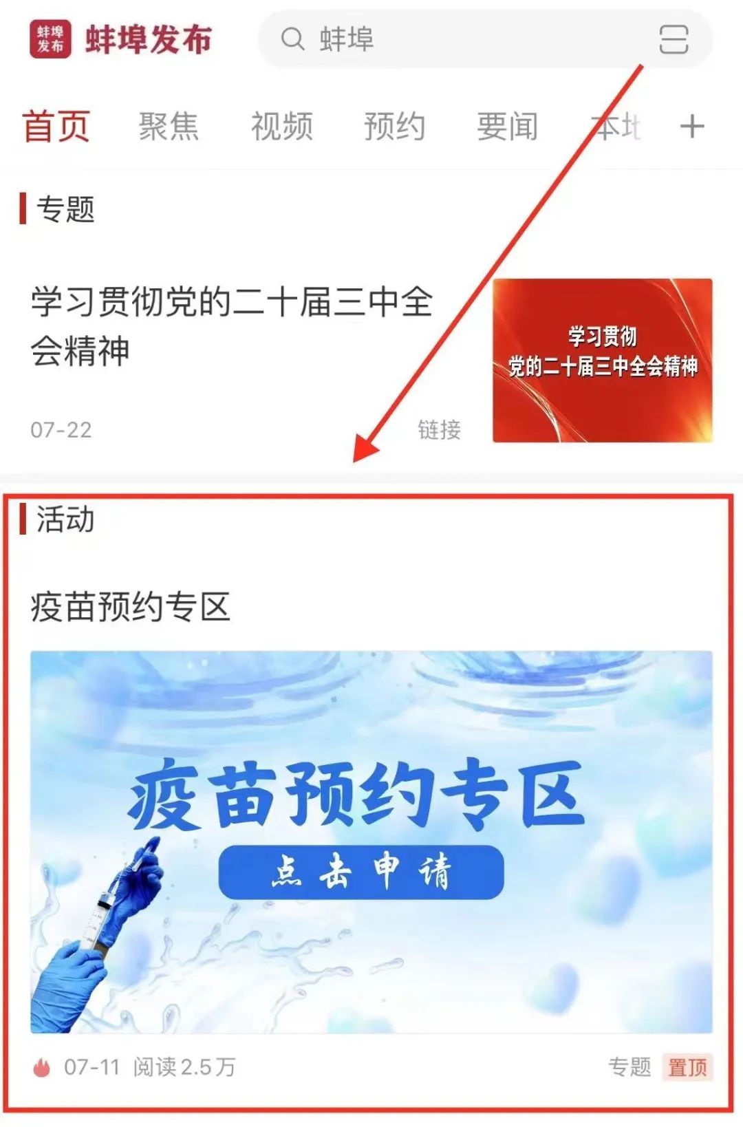 登录“蚌埠发布”首页,进入“疫苗预约专区”