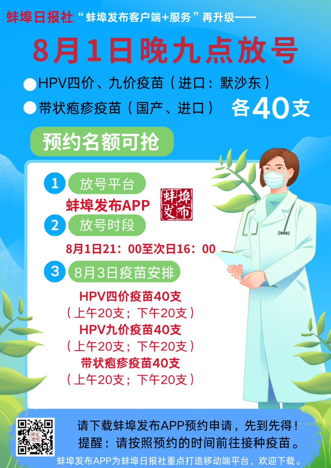 7月蚌埠发布APP连续推出多轮疫苗预约放号