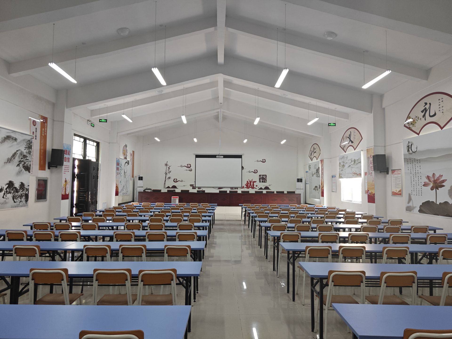 走进文化大礼堂,记者看到,礼堂内部明亮整洁,座椅井然有序,可同时容纳3000人左右就餐。“一共设置了30桌,每桌10人,不仅可以用来办红白喜事,平时村里、镇上需要开会,也都来我们这里。”一旁的村民告诉记者。