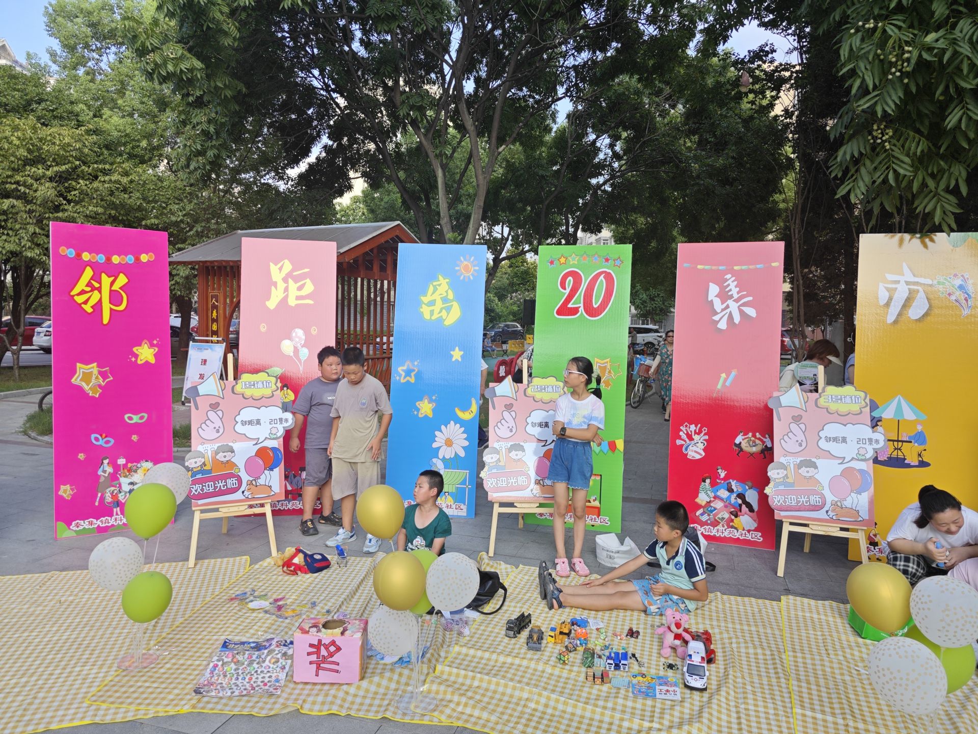 尤为引人关注的是20个小朋友的摊位。原来,为了丰富社区内小朋友们的暑假生活,提高小朋友们的生活实践能力、沟通能力和判断能力等素质,科苑社区特意在暑假期间,将小朋友“以物易物”摆摊卖货放进了“20集市”内。