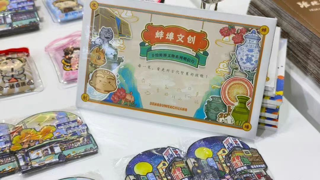 蚌埠市博物馆作为参展单位之一在本届展会上盛装亮相。展会上,蚌埠市博物馆带来了以馆藏文物资源、地标性建筑、区域美食和方言为基础开发的各类文创产品30余款,备受游客欢迎。展台前人头攒动,参观者们纷纷驻足欣赏,热闹非凡。
