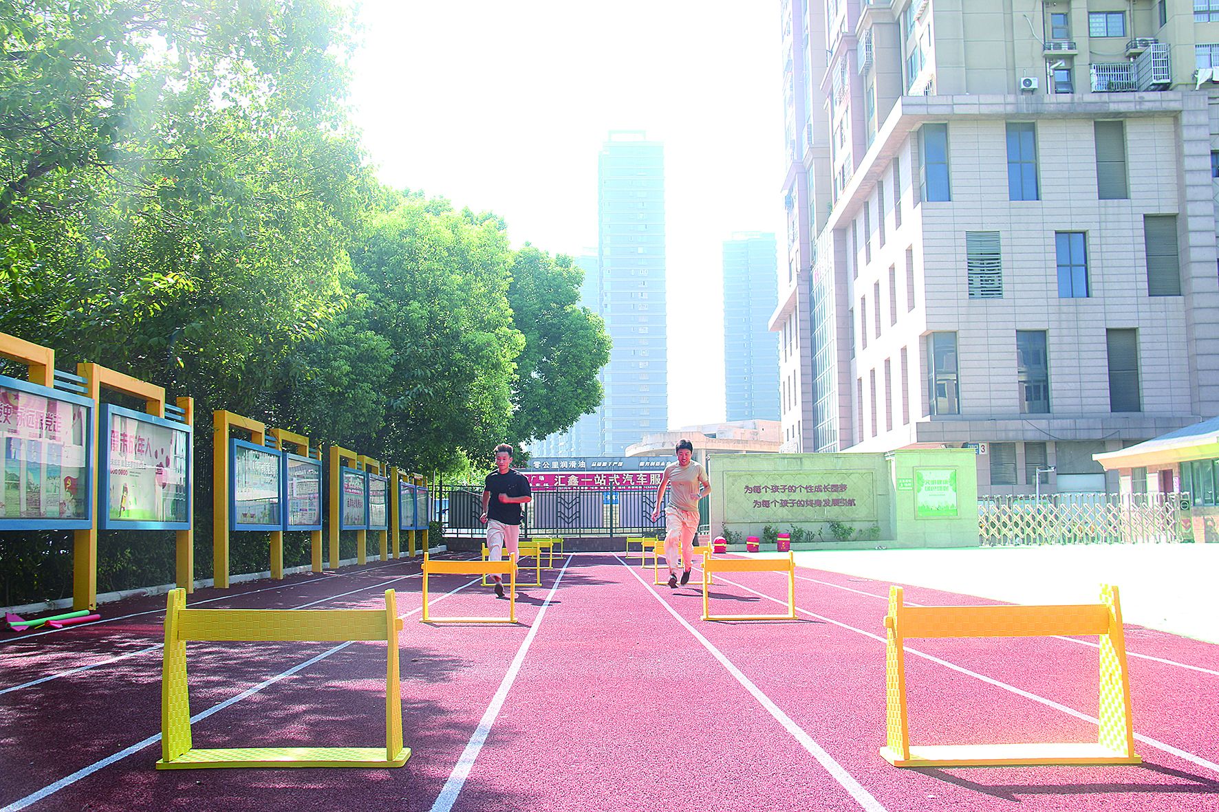 9月1日,蚌埠第一实验学校汇金小学体育老师提前体验新器材
