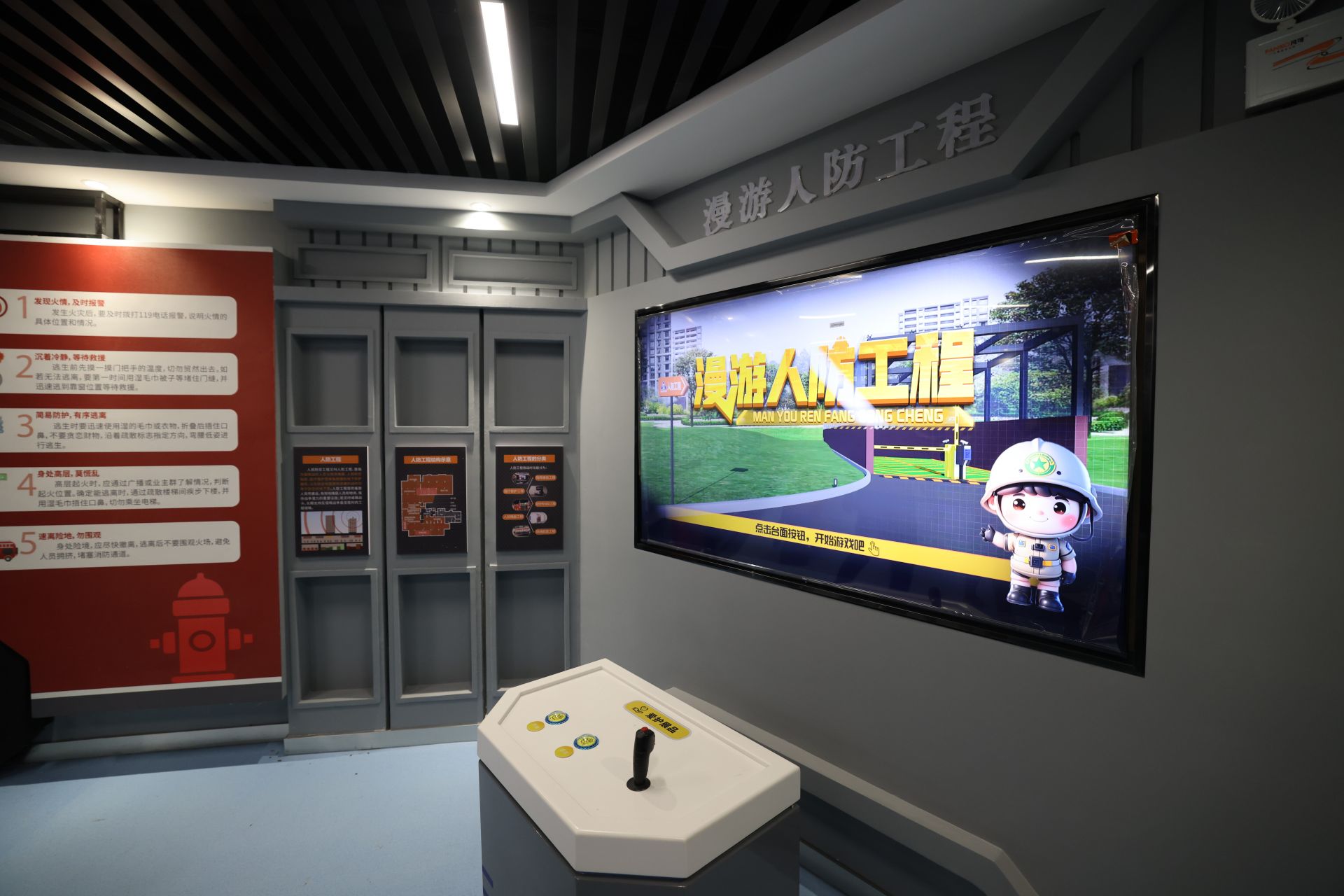 南山公园国防教育中心设置“穿越防空洞”研学体验区、“国防小卫士”研学实践区两大主题展区。其中,“穿越防空洞”研学体验区充分利用防空洞建筑特点,重点通过灯光、特效营造地下防空洞的氛围,着重于在沉浸式体验中,带领观众认识防空洞的结构,在研学体验过程中学习国防与人防知识,同时打造成网红打卡点。