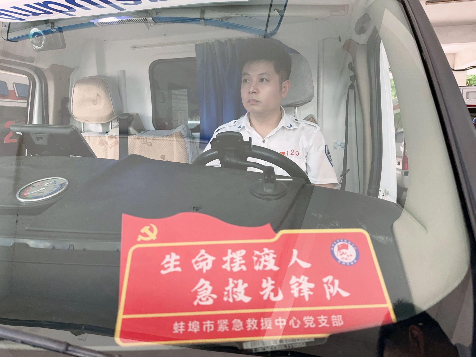 9月6日上午9时许,刚送救护车去做完保养,120蚌埠市紧急救援中心车管科科长付康耀驾驶车辆在返程途中,路经宏业路时,发现机动车道上一位老人被电动车撞倒在地,出于急救人员的本能,他毫不犹豫选择停车救人。