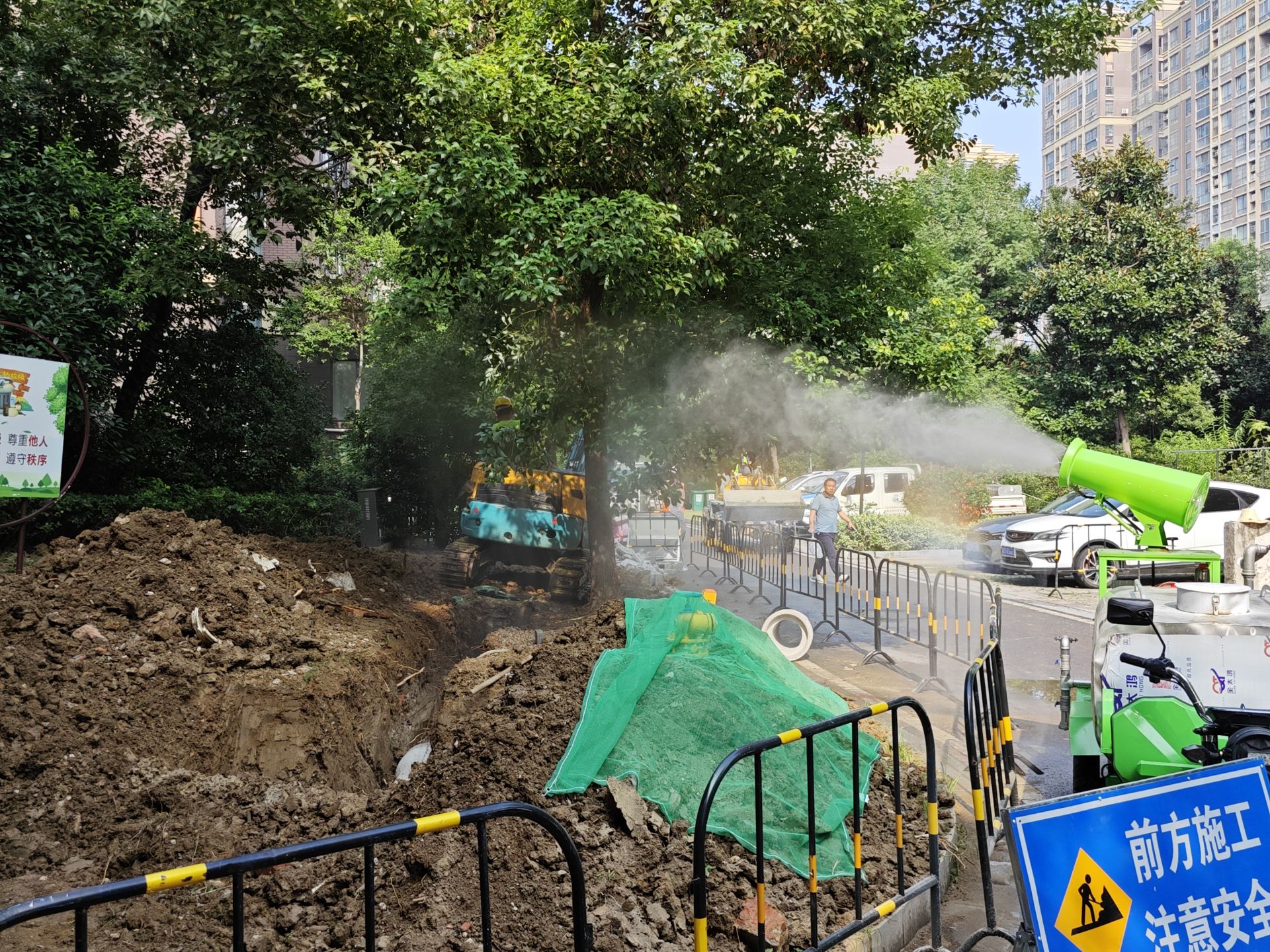 在绿地世纪城社区津桥公馆北苑小区,该小区的雨污分流改造工程正在紧锣密鼓地进行中。施工现场,挖掘机、洒水车等设备有序运转,工人们在开挖的沟槽中进行管道铺设,工程进展顺利。“此次工程的主要任务是将原有的雨污合流管道分离,铺设全新的雨污管网,确保雨水和污水分别处理。”中城通达建设集团有限公司副总经理高尔繁说。