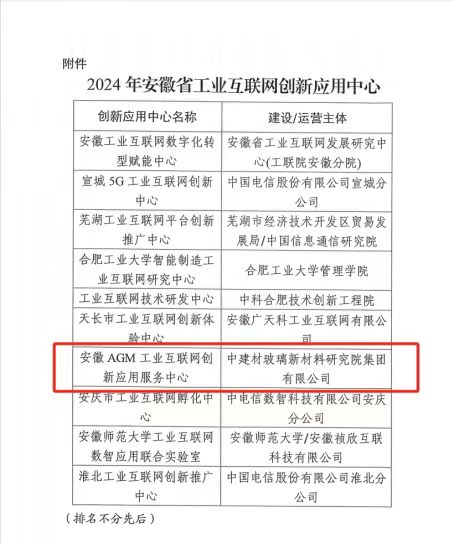 蚌埠发布客户端讯(融媒体记者 顾楷 刘彧 通讯员 李媛媛)9月20日下午,在2024世界制造业大会专场发布活动中,2024年安徽省工业互联网创新应用中心评选结果作为“数字化转型重磅发布”内容,正式向全球公布。我市中建材玻璃新材料研究院集团有限公司的安徽AGM工业互联网创新应用服务中心成功入选,成为全省首批10家创新应用中心之一。