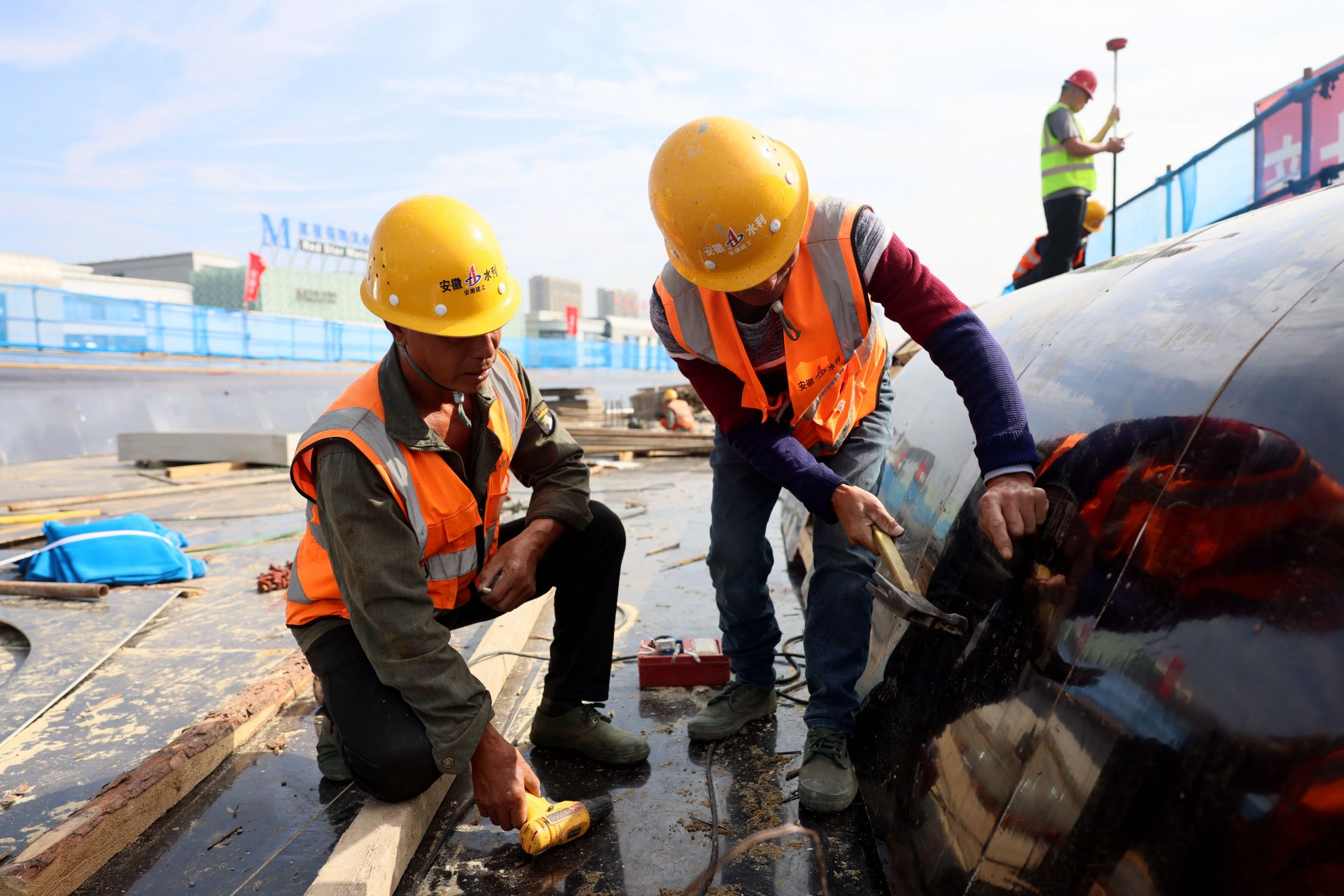 蚌埠发布客户端讯 10月1日,国庆假期第一天,记者在延安路大桥及接线工程现场看到,各岗位管理人员和建筑工人坚守岗位,抢时间抓进度。延安路大桥及接线工程位于朝阳路淮河公路桥和解放路淮河大桥之间,线路全长2733米,建设内容除跨淮河特大桥、南侧引桥和北侧引桥外,还要建设匝道桥、人行梯道桥等。