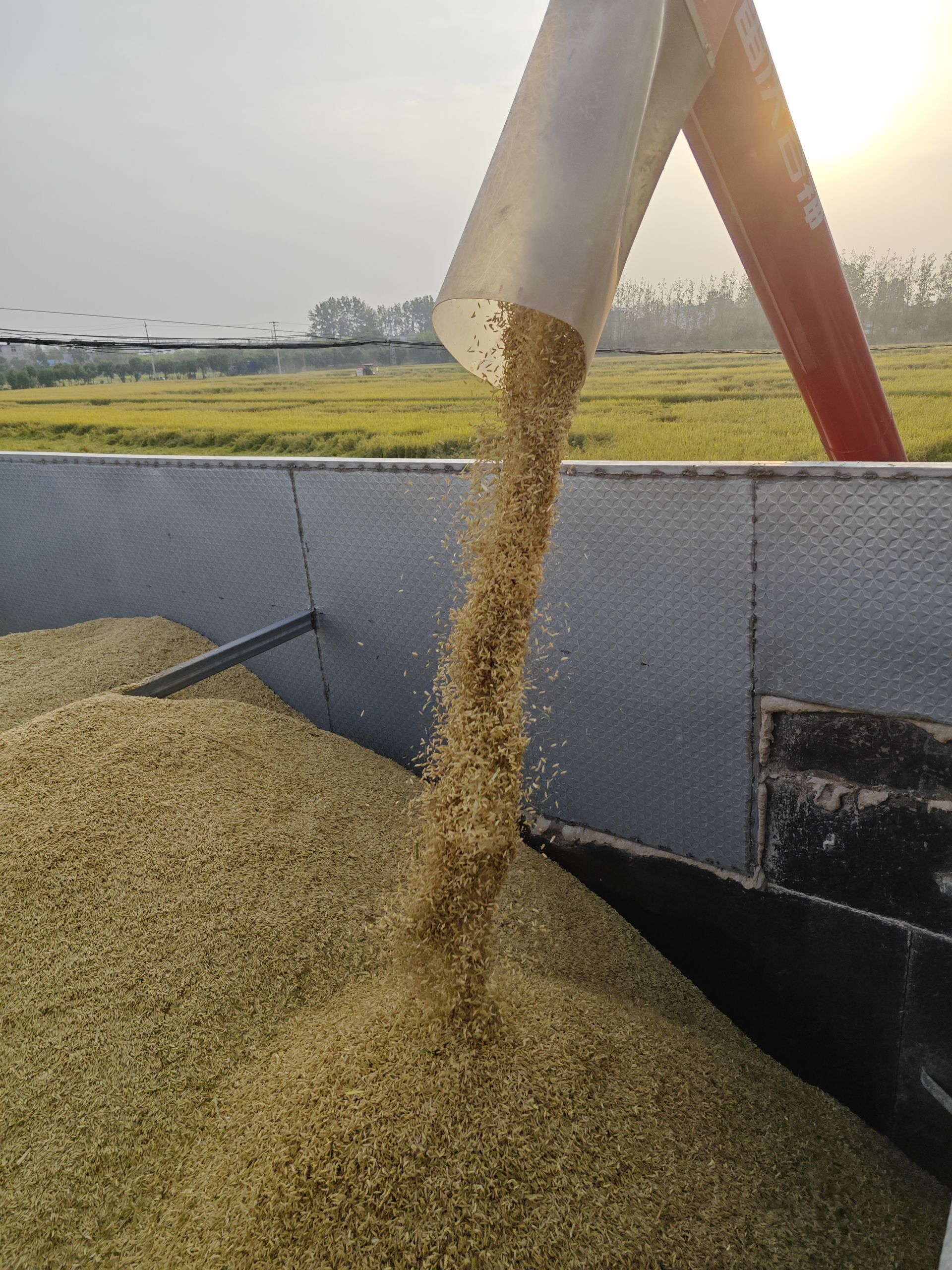 连日来,五河县小圩镇四陈村千亩集中连片数字农业示范基地里,数台履带式大中型联合收割机在金黄的稻浪里来回穿梭,粉碎后的秸秆均匀抛撒田间,运输车辆满载稻谷运往仓储点进行烘干入库。