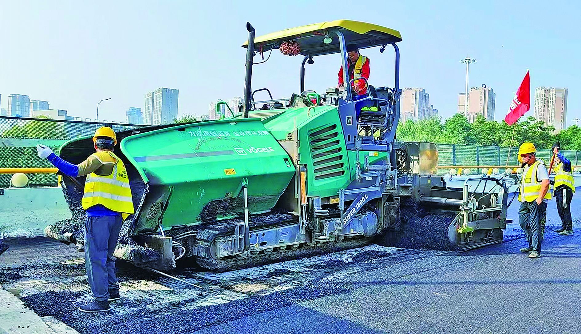 施工人员正在进行沥青摊铺