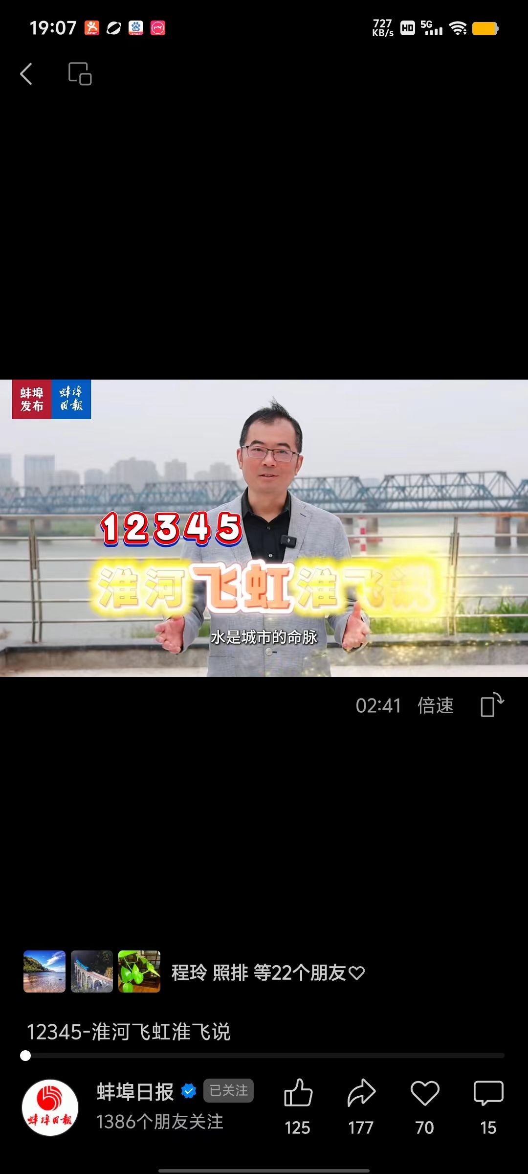 《“靓淮河”边靓出彩 蚌埠“小首尔”成网红打卡地》在蚌埠发布视频号发布后,除了“小首尔”更红以外,在镜头里出现的记者李博也在一夜之间获得了网友赠与的“蚌埠宋仲基”封号。