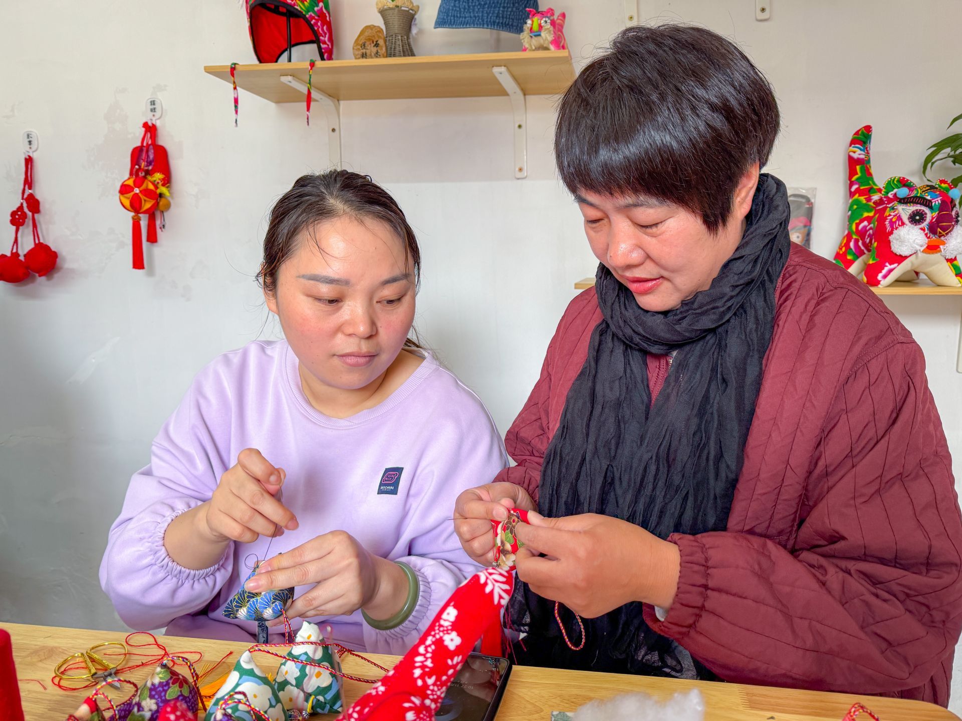 “从小我就对手工感兴趣,怎么也没想到有一天能在自家的村子里‘零距离’地学习传统手工技艺。”郭悦和王勉既是邻居也是好朋友,在一次串门中,郭悦被王勉手中精美的布艺刺绣作品所吸引,便在邻居的带领下来到王会的学习班“拜师学艺”。她告诉记者,如今家里亲戚朋友家的布艺小挂饰已经被她全部“承包”了,争取今年能学会更多的种类,在过年的时候露一手。