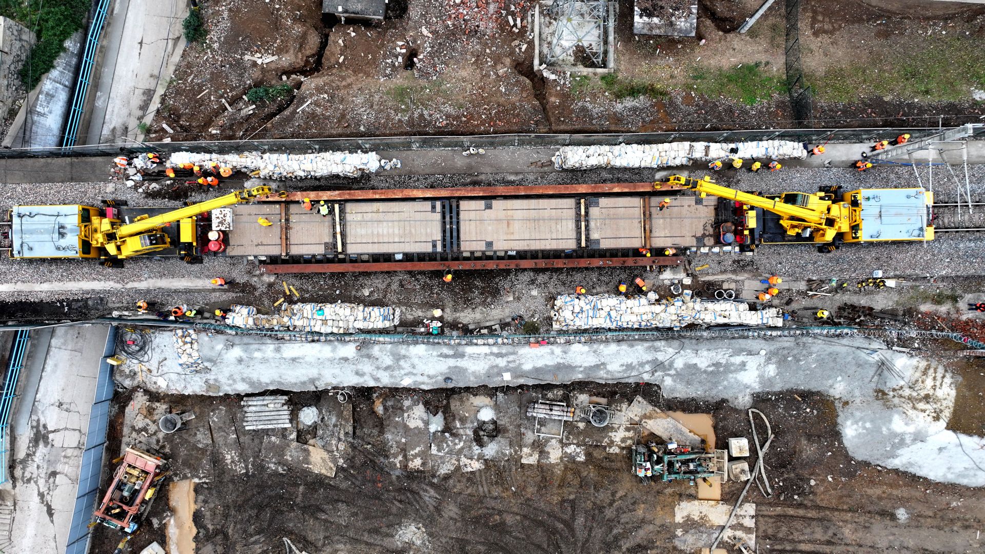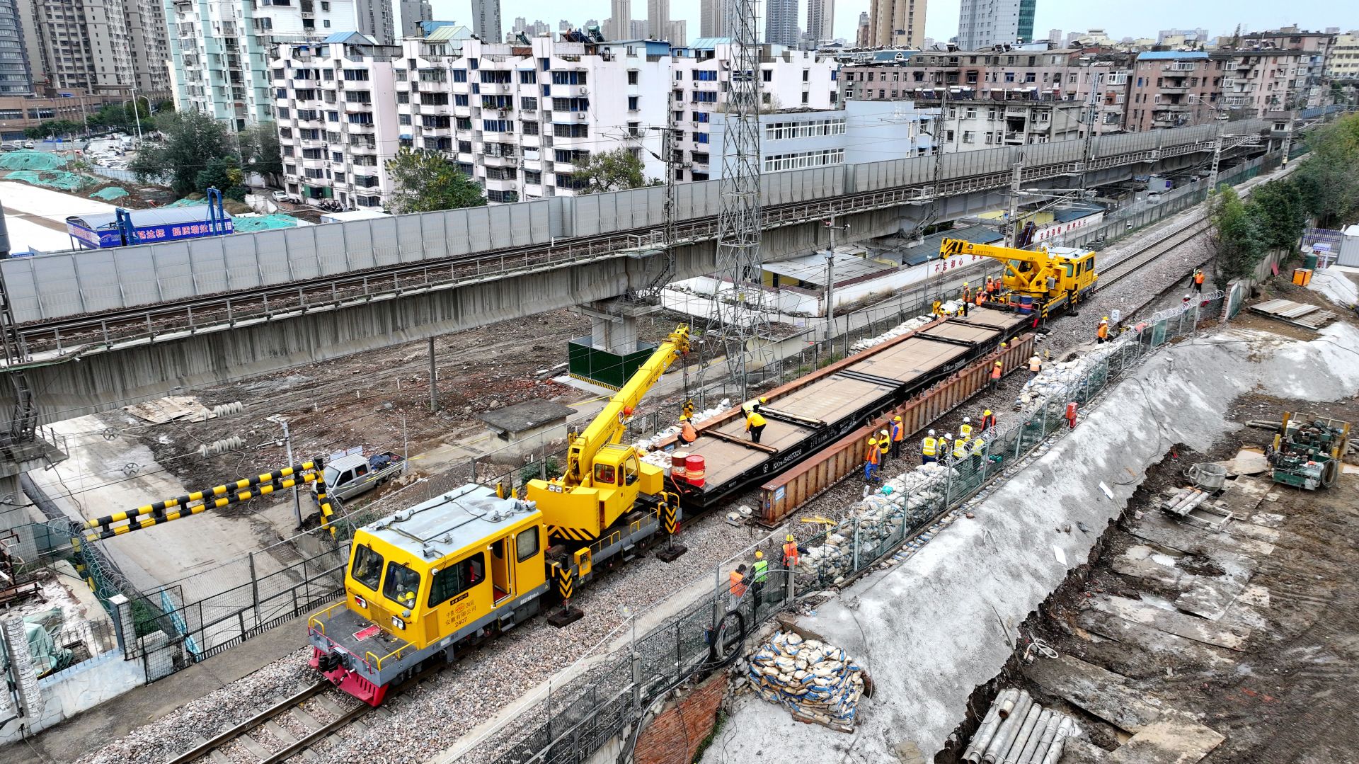 蚌埠发布客户端讯(融媒体记者 刘 晨文/图)11月18日,位于淮河南岸的滨河南路下穿京沪铁路立交工程现场,工程技术人员正配合铁路工程车对京沪上行线进行装卸便梁施工,“这一段是滨河南路的节点工程,对于整条路全线通车有着重要意义,由于涉及京沪铁路,前期进行了多项报批程序及电缆探挖等大量工作,最终确定施工日期。”市重点工程建设管理中心滨河南路负责人时磊对记者说。