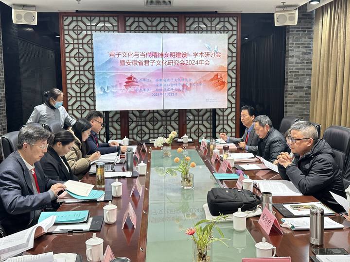 蚌埠发布客户端讯(胡蔚林)11月23日,“君子文化与当代精神文明建设”学术研讨会暨安徽省君子文化研究会2024年会在蚌埠禾泉小镇召开。来自各地的专家学者、文化爱好者、特邀嘉宾共计一百多人齐聚一堂,共同探讨君子文化在当代精神文明建设中的重要意义与价值。研讨会由安徽省君子文化研究会、安徽省社科院君子文化研究中心主办,蚌埠市君子文化学会承办。