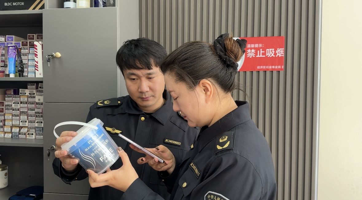 据介绍,按照相关规定,美容美发机构应当在其服务场所内显著位置展示其经营使用的化妆品的销售包装。“根据法律规定及辖区特点,经济开发区综合执法局统一制作了《美发机构经营使用化妆品销售包装展示栏》并免费发放。”经济开发区综合执法局相关负责人表示,在展示栏中设置了化妆品监管APP的介绍与下载二维码、12315投诉举报热线,进一步规范了辖区美发机构经营行为,促进了美发机构诚信经营,保障了消费者在美发过程中的安全与健康。
